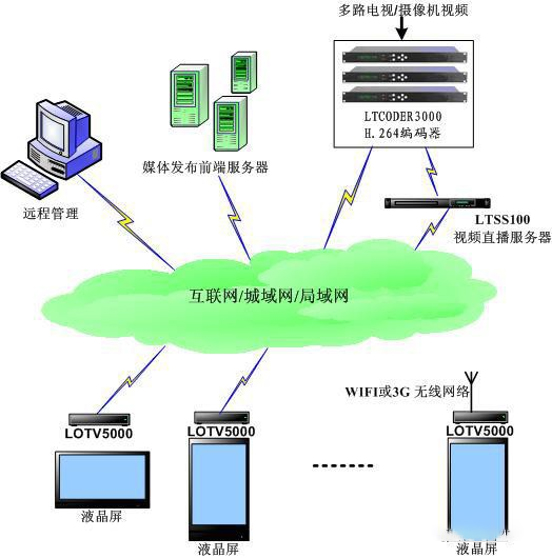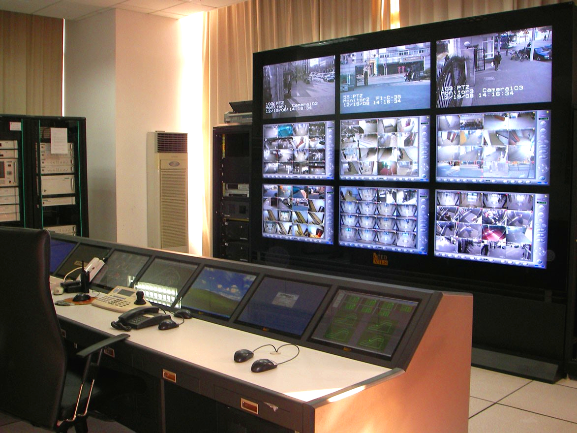 在指挥中心采用综合管理软件,实现对各监控点多画面实时监控、录像、控制、报警处理和权限分配。